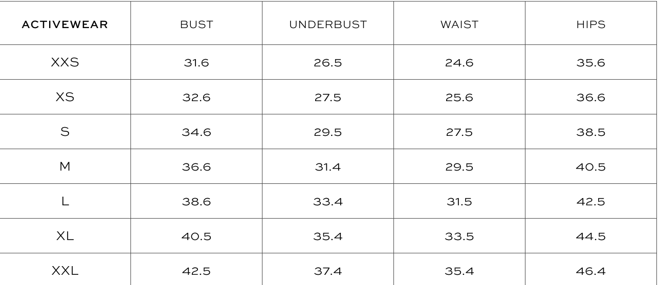 - XS: Waist 55cm, Hip 70.8cm, Inner Leg 65.3cm